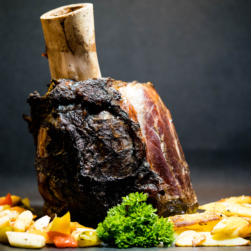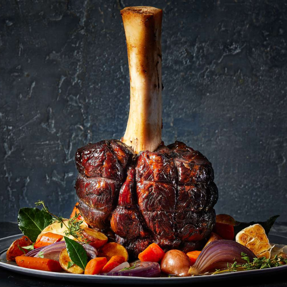 A showstopper bone-in Thor Hammer cut — rich in flavour and perfect for slow cooking or BBQ roasting.